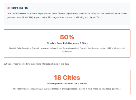 India is not one market it’s 9 metros, 16 boom towns, and 38+ niche cities. Even within metros, it’s micro markets.