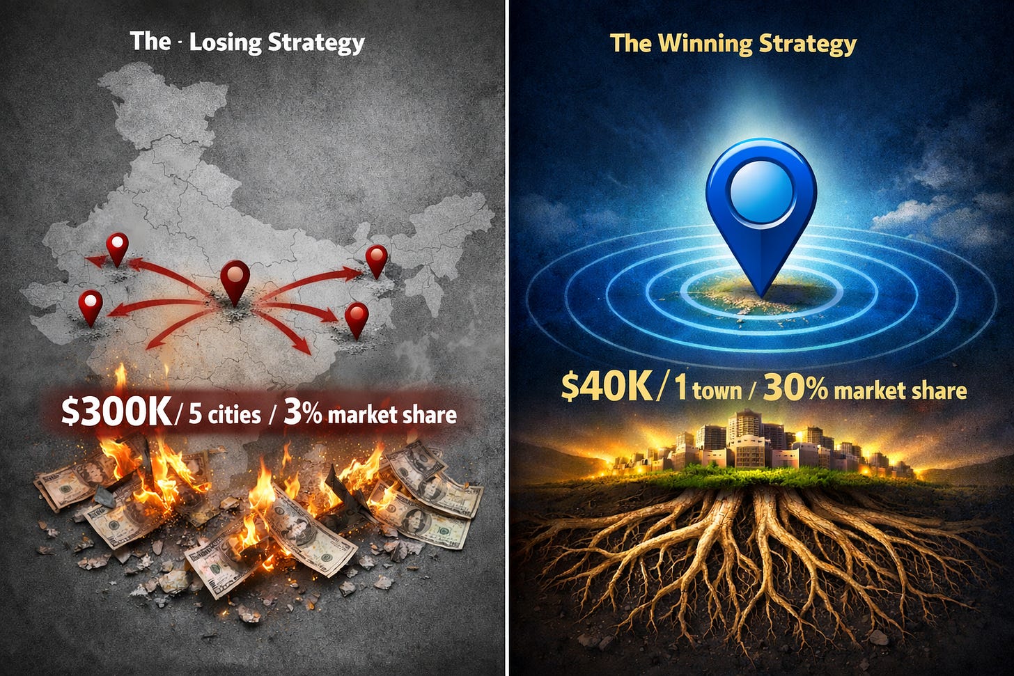 He could have owned Nashik with $40K, targeted specifically the Strivers or The Near Rich household with clear knowledge of where they are located. Built 30%+ market share. Created a playbook that actually worked. Then scaled from strength.